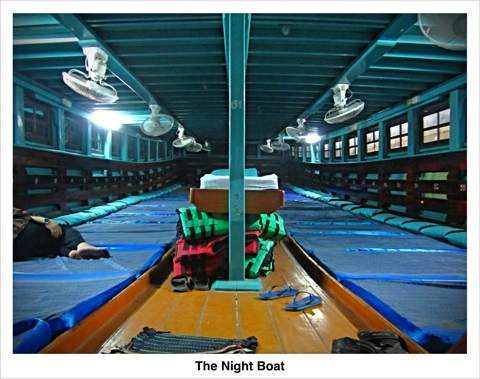 2104 – 91F we have just left. Conditions on the boat are, as i expected, shit. Each person on this godforsaken vessel has around 2.5 feet of room. I have some skinny Thai bloke next to me on my right; seems quit pleasant – doesn’t smell too bad, I shall call him Frank, and Ed on my left; also quite pleasant – smells worse than skinny man. There are ceiling fans that do a great job of cooling everyone else apart from me, Ed and Frank the skinny man; the last three people on the row, and, oh the lights have gone off down this end as well, cosmic. I am and just glad it is not boiling hot and I am not surrounded by 100 sweaty people, most of whom haven’t showered in two days…wait a minute.