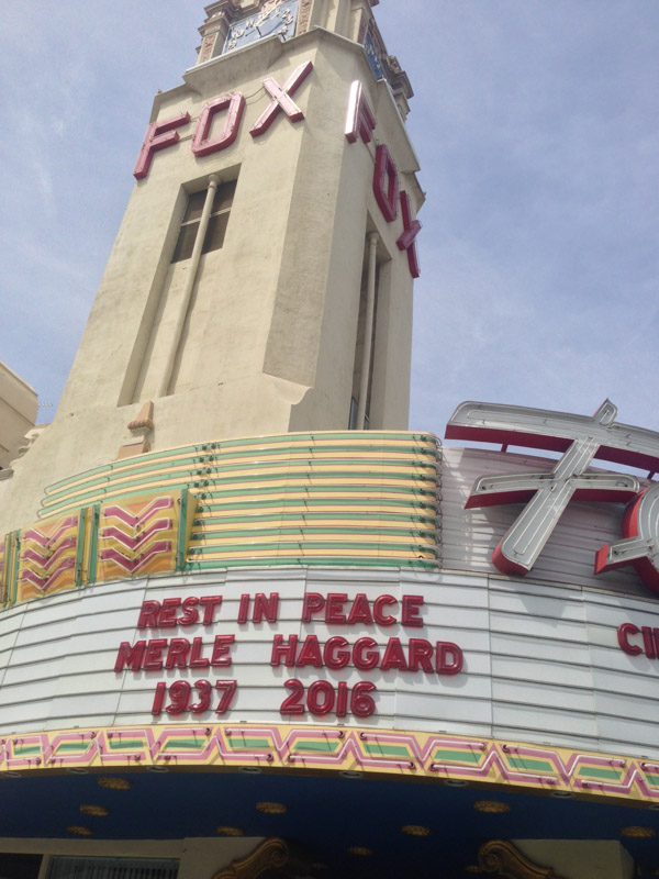 We flew in to Bakersfield the day before the show and arrived in enough time to sit by the pool for a while before the sun disappeared. The warm Californian weather was a real treat. I even managed to squeeze in a movie that night. I managed to get a look around the next day and really enjoyed it. It just so happened that Merle Haggard had died the day before and he was from very near Bakersfield so there were a few places around town paying tribute to him.